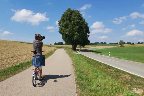 Dann war es soweit: Wir trafen uns am Bahnhof in Erdweg. Ich hatte mein Rad auf den Radständer geschnallt und war mit „Roadee“ da. Nadine kam mit ihrem kleinen Klapprad mit der S-Bahn. So hatten wir gleich einen lustigen Vergleich unserer Bikes – denn ich habe ja seit einigen Jahren ein E-Bike.