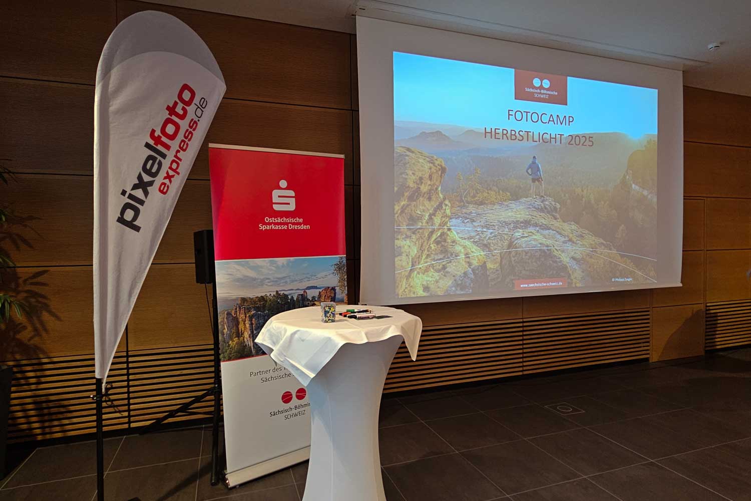 Ein großes Danke schön an Anna Meurer, die wie immer souverän durch die Veranstaltung führte. Aber auch an die Sponsoren, die es ermöglichen, dass die Veranstaltung von den Kosten in einem wirklich bezahlbaren Rahmen bleiben. Allen voran natürlich der Tourismusverband der Sächsischen Schweiz, deren Mitarbeiterinnen uns auch durch die Tage begleitet haben. Weitere Sponsoren und Unterstützer sind Pixelfotoexpress, die wieder einen Stand mit vielen Mustern von Fotopapieren und anderen Produkten zum Kennenlernen hatten. Weiter natürlich das Hotel Elbresidenz, das uns den bzw. die Räume für diese Veranstaltung zur Verfügung gestellt hatten. Ein weiterer großer Sponsor ist die Ostsächsische Sparkasse Dresden, Wer wollte, konnte sich wieder eines der zahlreichen Objektive von Sigma ausleihen