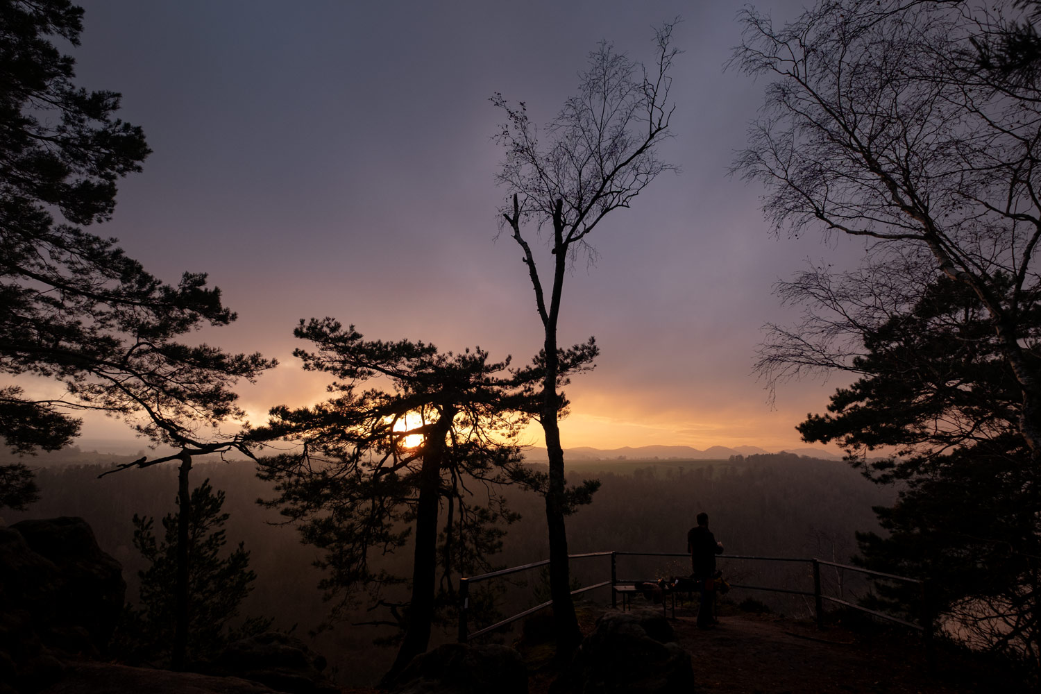 Markus und ich packten uns nochmal zusammen, der Plan war, den Sonnenuntergang an der „Kleinen Bastei“ festzuhalten. Leider waren wir schon etwas spät dran, trotzdem konnten wir ein schönes Abendlicht einfangen. Und dann machte Markus noch einige tolle ICM-Fotos. Denn auch dieses Jahr hatte die liebe Carla ihr Wissen zu dem Thema als Vortrag gehalten – und die Ergebnisse von Markus waren einfach super!
