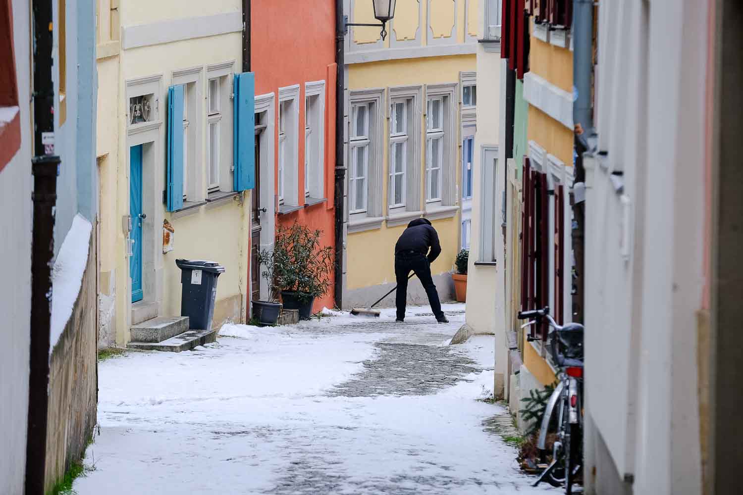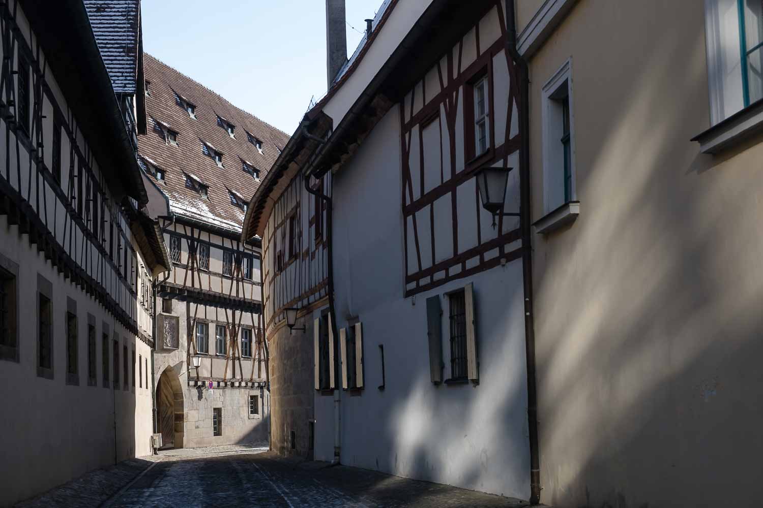 Um 14 Uhr starteten wir dann zur ersten kleinen Tour durch die Altstadt. Unser erstes Ziel war das Alte Rathaus, gefolgt von den schmalen, verwinkelten Gassen, die uns immer wieder spannende Motive boten. Am Ufer der Regnitz fotografierten wir „Little Venice“. Leider zog das Wetter zu, und die Kälte kroch langsam in die Finger.