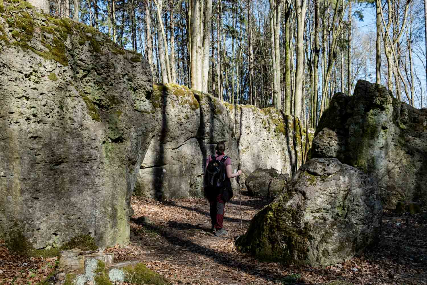 Ich hatte gut geschlafen, frühstückte gemütlich und packte meinen Fotorucksack. Dann holte mich Chrissy ab und es ging Richtung Fränkische Schweiz. Wir holten noch kurz einen Imbiss, dann ging es weiter. Im „Zielgebiet“ angekommen, hielten wir neben einer Brücke und machten Fotos am schönen Flusslauf der Wiesent, dann ging es zum großen Parkplatz an einem Schwimmbad und wir konnten die Wanderung hoch zur Burgruine Neideck starten.