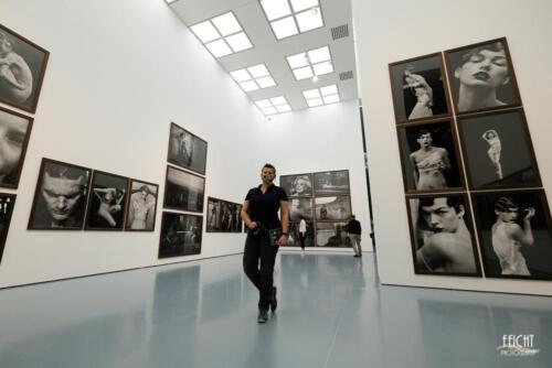 Dann ging es eine Etage höher – und wir waren gleich begeistert! Ein toller, hoher Saal, sehr schön vom Licht, zeigt wunderbare Fotos von Peter Lindbergh. Und die Ausstellung ist anders als die in München. Werke, die ich noch nicht kannte, riesige Abzüge an den Wänden. Und die Menge der Leute war auch erträglich.