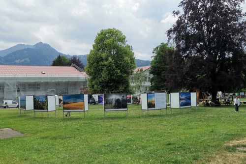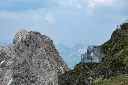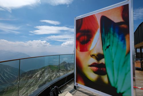 Ich konnte mir meine Ankunft beim Fotogipfel einteilen und reiste ich bereits am Mittwoch mittags an. Leider war das Wetter nicht so toll, trotzdem startete ich gleich nach dem Einchecken mit zwei Fotofreunden, Lara und Markus, mit der Bahn aufs Nebelhorn. Die Ausstellung von Kristian Schuller war natürlich schon aufgebaut, ich war begeistert. Und heute waren kaum Menschen hier oben.