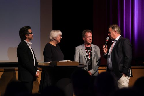 Am späten Abend schauten sich Claudia Roth und Kristian Schuller die Ausstellungen an – und kamen auch bei unserer „Unser Sommer“-Ausstellung vorbei! Da war ich dann ganz mutig und sprach Kristian an. Wen das jetzt etwas wundert: Im beruflichen Leben fotografiere ich ja Menschen und Mode – und Kristian ist eines meiner großen Idole.