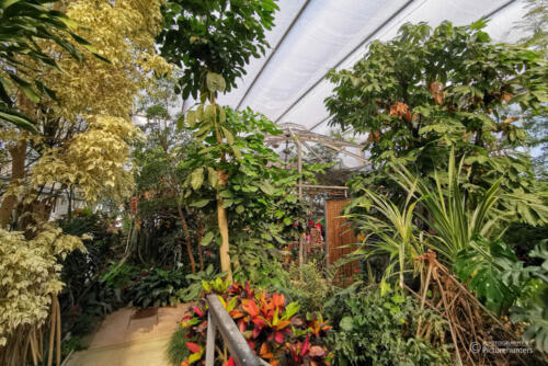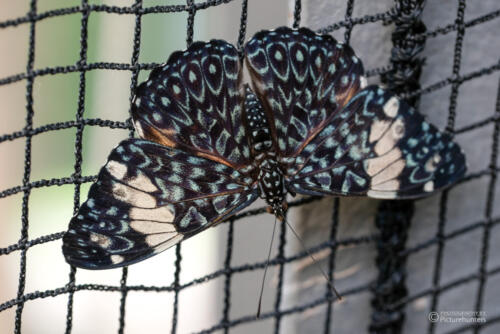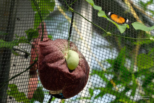 Schade fand ich, dass es wirklich nur das eine kleine Gewächshaus gibt – und der Bereich, in dem die Schmetterlinge untergebracht sind, ist noch viel kleiner. Die Insekten sieht man hier meistens am Netz an den Wänden, es gibt kaum Pflanzen, die so stehen, dass man die Tiere so fotografieren kann, dass es aussehen könnte als wären sie in freier Wildbahn.