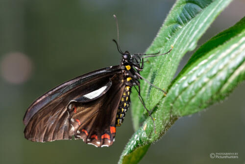Ich habe ungefähr die gleiche Anzahl an Aufnahmen mit 200, 400, aber auch 800 ISO. Nur im Schatten der Pflanzen gehe ich bei ein paar Aufnahmen auf ISO 1000. Bei den Blendenwerten variiere ich auch, aber f 5,6 ist am häufigsten im Einsatz. Schließlich versucht man, die Schmetterlinge möglichst nah zu erwischen und da geht die Schärfentiefe sehr schnell verloren. Von daher sehe ich keinen Sinn darin, Blendenwerte von z. B. 2,8 zu verwenden.
