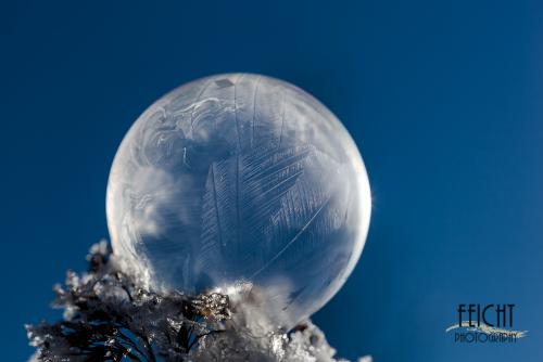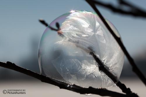 Es sind sehr, sehr viele Blasen sofort zerplatzt, bis wir dann doch mal ein paar Erfolge verzeichnen konnten. Jetzt hieß es, schnell sein mit der Kamera und den Einstellungen. Und dann ist es einfach faszinierend zu sehen, wie sich die Eiskristalle mal schneller, mal langsamer auf den Seifenblasen bildeten.