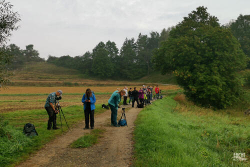 Danach machten wir uns auf den Weg zu einer Burg. Eigentlich nur knapp drei Kilometer. Und auch nicht „alpin“ oder so. Ich hatte erst Bedenken, weil so viele Wanderstiefel anhatten, ich nur meine „normalen“ Wanderturnschuhe. Aber die haben gereicht. Und für die kurze Strecke brauchten wir ein paar Stunden. Klar, ein Fotograf bleibt schon ständig stehen – jetzt stellt euch das mit über 50 Leuten vor! Da gab es immer was zu Entdecken und Fachsimpeln.